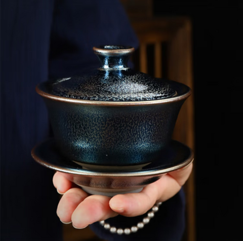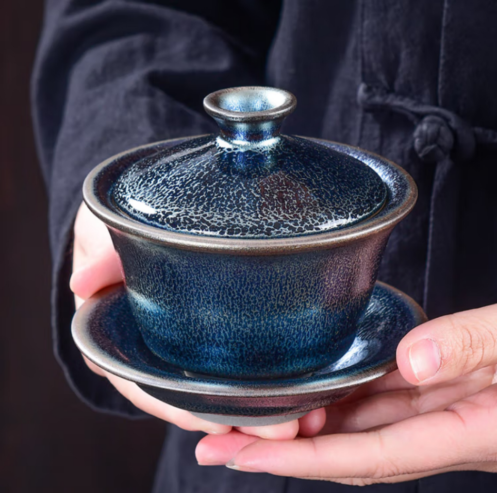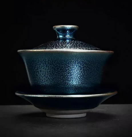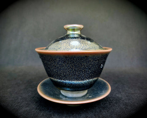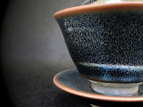 (Note: Jianzhan glazes are entirely unique to each piece, as they are based on changes that naturally occur in the kiln.  Thus, the pattern of the gaiwan you receive will be slightly different than the one in the picture, as each one is entirely unique.)