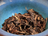 What makes the aged tea from Shaanxi particularly special is the "Golden Flower" mushroom found there, which grows on the tea as it ages.  Long-hailed for its medicinal benefits, this fungus is used to ferment a variety of medicinal substances, in addition to tea, in order to potentiate their medicinal benefits.  These claims are bolstered by a growing body of scientific research, which has thus far shown Golden Flower (AKA Eurotium cristatum) to have anti-inflammatory, anti-tumor, anti-obesity, probiotic, and immunomodulatory effects, to lower cholesterol and lipid levels, and support a healthy gut biome, thereby benefiting digestive health.  Thus, it is unsurprising that studies indicate that it may be useful in cases of ulcerative colitis, obesity, and both Type I and Type II Diabetes.  (See links at bottom of description for a fraction of these studies.)  In addition to its health benefits, Golden Flower's transformation of elements in the tea reduce its bitterness and impart a unique flavor, prized by connoisseurs.  When it comes to a Golden Flower white tea, such as this one, these transformations are said to impart a vibrant color to the tea and improve its fragrance, while lowering its polyphenol content, thereby reducing any potential bitterness and astringency.