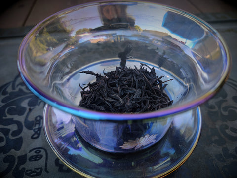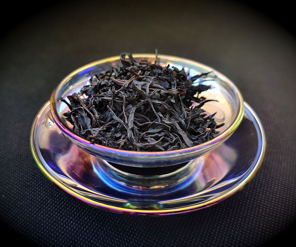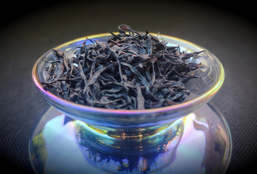 Dry, its leaves are black and twisted, with a hint of red. It produces a rich, mahogany brew, with aromatics of oak, cherry, apricot, leather, and hickory. Its flavor is rich, woody, slightly smoky, becoming sweeter on the tongue in later brews, with elements of oak, honey, lavender, rhubarb, cinnamon, and clove, with delicate aromatics reminiscent of orchids, jasmine, and honey.