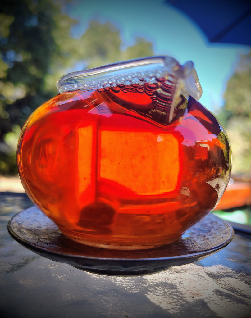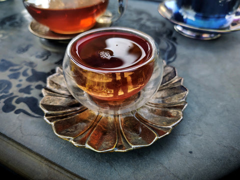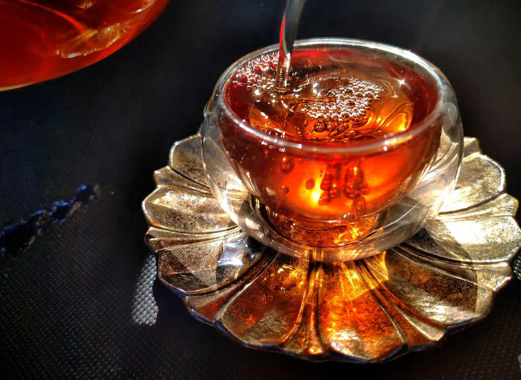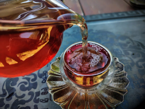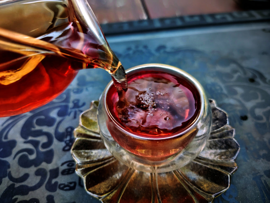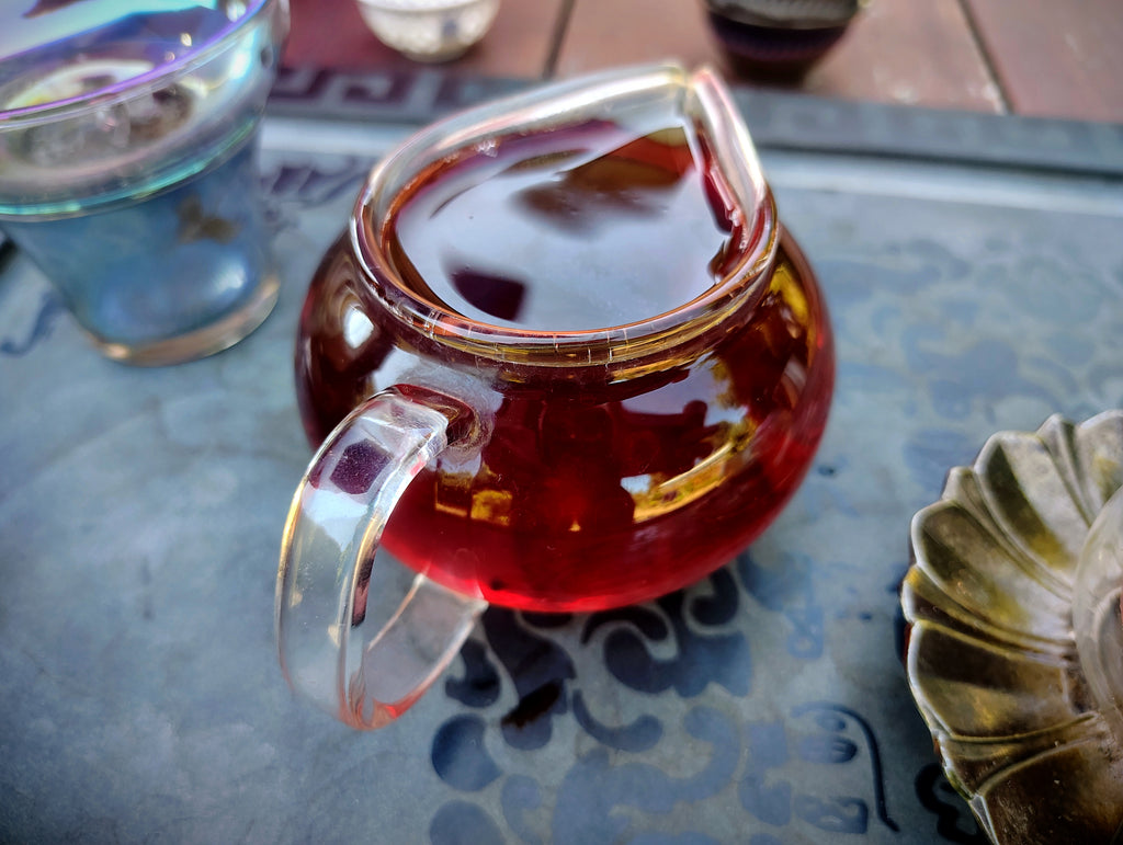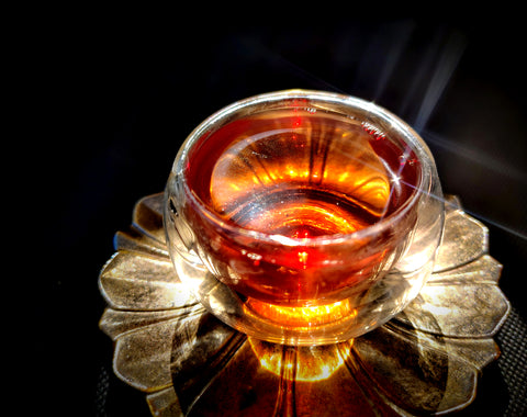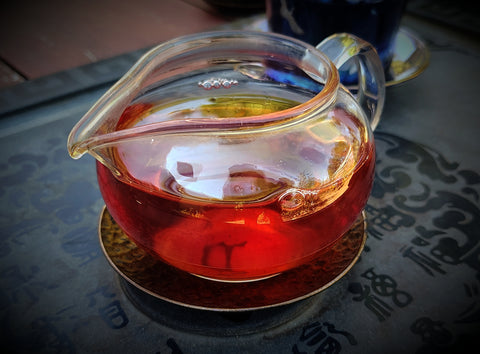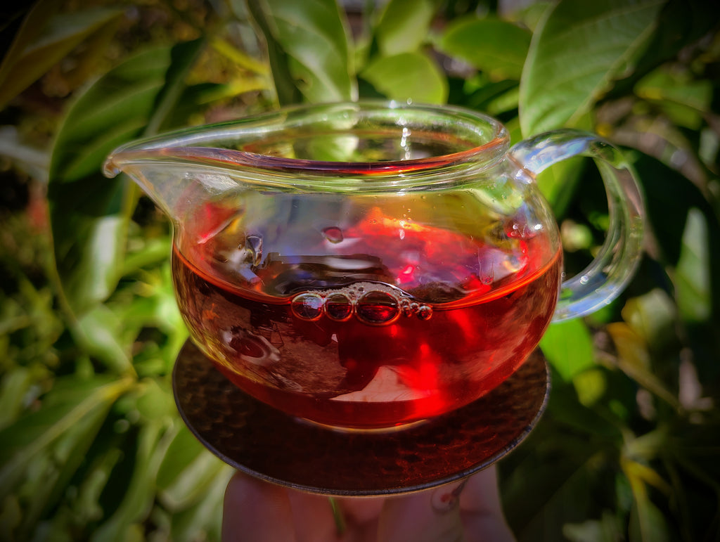 Its texture is smooth and full bodied, its qi warm and harmonizing. This delectable brew has the character of the heart of the forest, like the core of an ancient tree. It is stimulating yet grounding, with a warm, harmonizing qi, and leaves a pronounced sweetness on the back of the tongue and the throat, a phenomen known in Mandarin as "huí gān".
